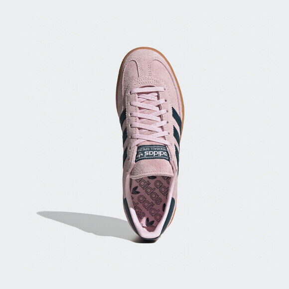 Przedstawiamy adidas Handball Spezial "Clear Pink". Zostały stworzone z myślą o grze w piłkę ręczną, ale po latach stały się miejską ikoną, która przyciąga uwagę na ulicach i podkreśla twój unikalny styl. Połacie różowego zamszu na cholewce o niskim, wygodnym w noszeniu profilu nadają tym butom niezwykłego uroku i sprawiają, że wyróżniają się spośród tłumu. Elementy w odcieniu granatu dodają butom adidas szlachetności i elegancji.