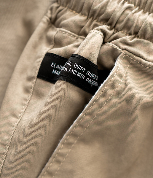 Posiadają gumę w pasie i dodatkowo regulację sznurkiem poliestrowym. Z tyłu kieszeń ozdobiona haftowaną naszywką z logo elade.