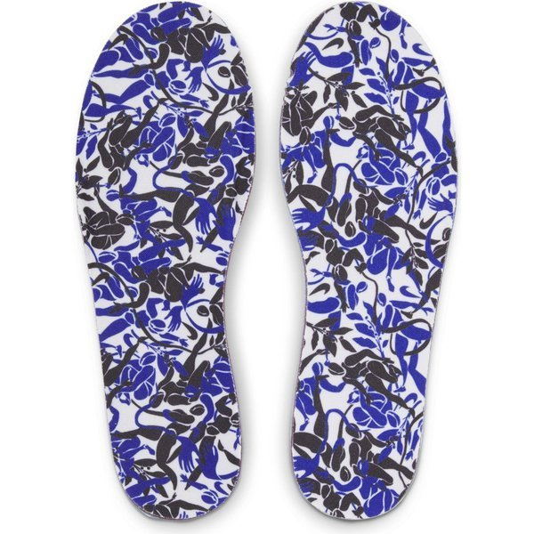 Wzór na wkładce i naszywka na zapiętku wyrażają kobiecą siłę i solidarność w sporcie.
